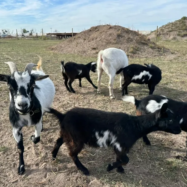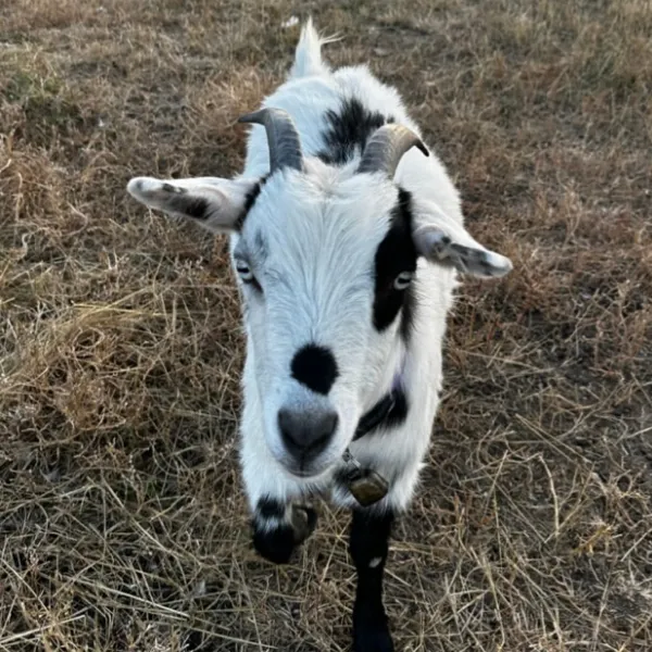 Kenny was our first boy and remains the steady heart of the herd. As a wether, he’s extra mellow and excels at teaching the "newbies" (and the humans!) how to relax and enjoy the sunshine.