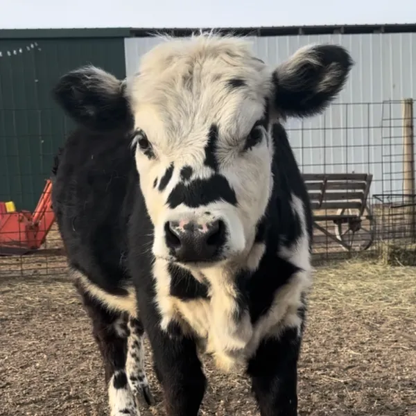 A miniature mix of Hereford, Angus, and Dexter, Purcie is 400 lbs of pure personality. She is incredibly sweet, but as her name suggests, she can be quite pursistent—especially if she thinks you have a spare apple!