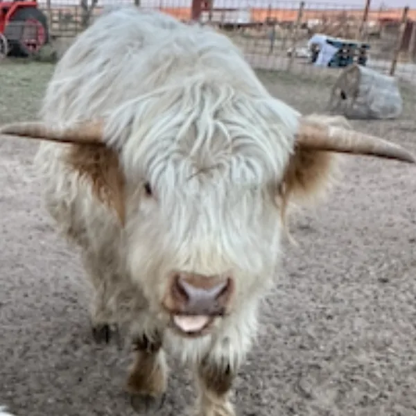 Nick Nack is our resident Highland "teddy bear." He finds deep peace in a good grooming session, though as a teenager, he’s still figuring out exactly how wide his horns are! He is a beautiful reminder that we are all growing and learning about our own space.